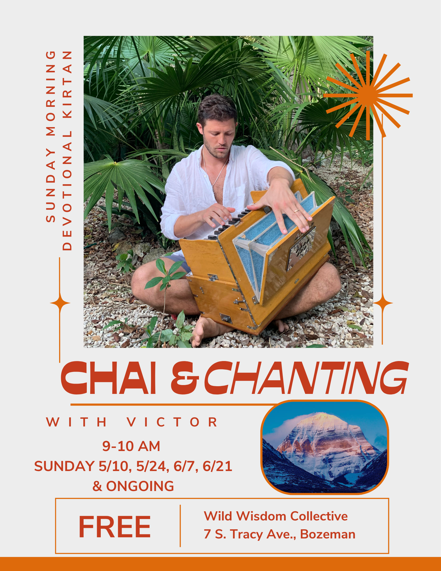 Chai & Chanting Sunday, May 10, 2026 9:00 AM 10:00 AM Wild Wisdom Collective 7 South Tracy Avenue Bozeman, MT, 59715 United States (map) Google Calendar ICS