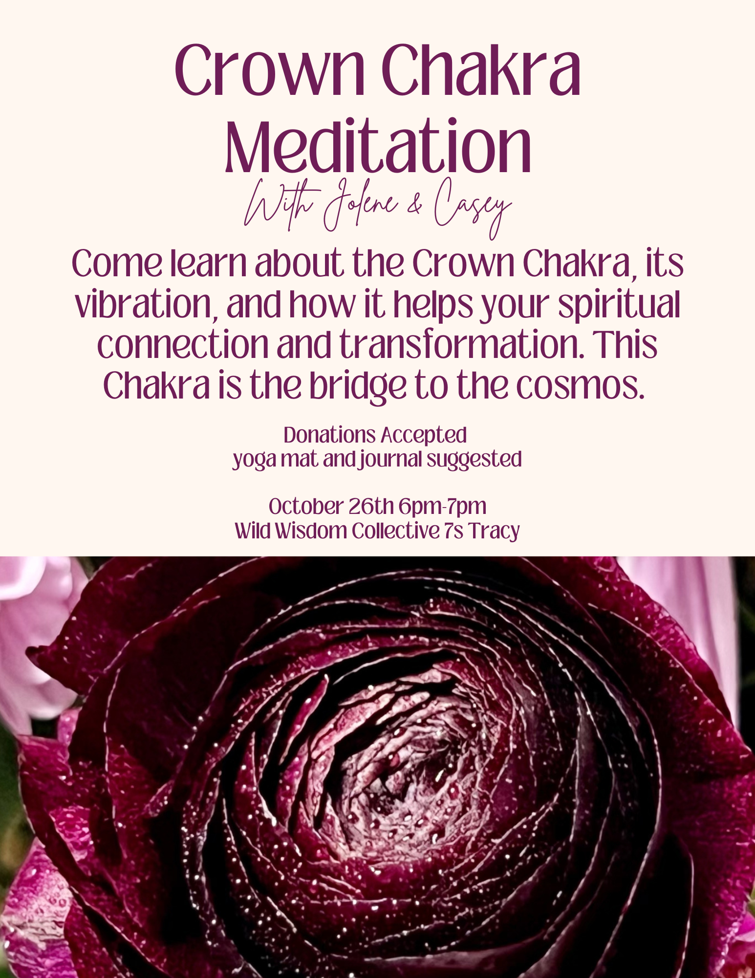 Back to All Events Crown Chakra Meditation Thursday, October 26, 2023 6:00 PM 7:05 PM Wild Wisdom Collective 7 South Tracy Avenue Bozeman, MT, 59715 United States (map) Google Calendar ICS