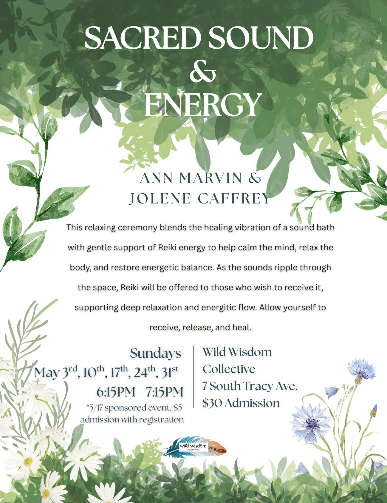 Sacred Sound & Energy Sunday, May 31, 2026 6:15 PM 7:15 PM Wild Wisdom Collective 7 South Tracy Avenue Bozeman, MT, 59715 United States (map) Google Calendar ICS