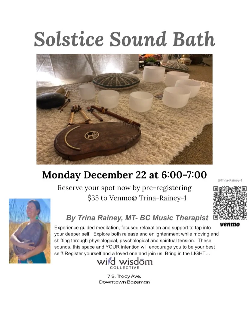 Back to All Events Solstice Sound Bath Monday, December 22, 2025 6:00 PM 7:00 PM Wild Wisdom Collective 7 South Tracy Avenue Bozeman, MT, 59715 United States (map) Google Calendar ICS